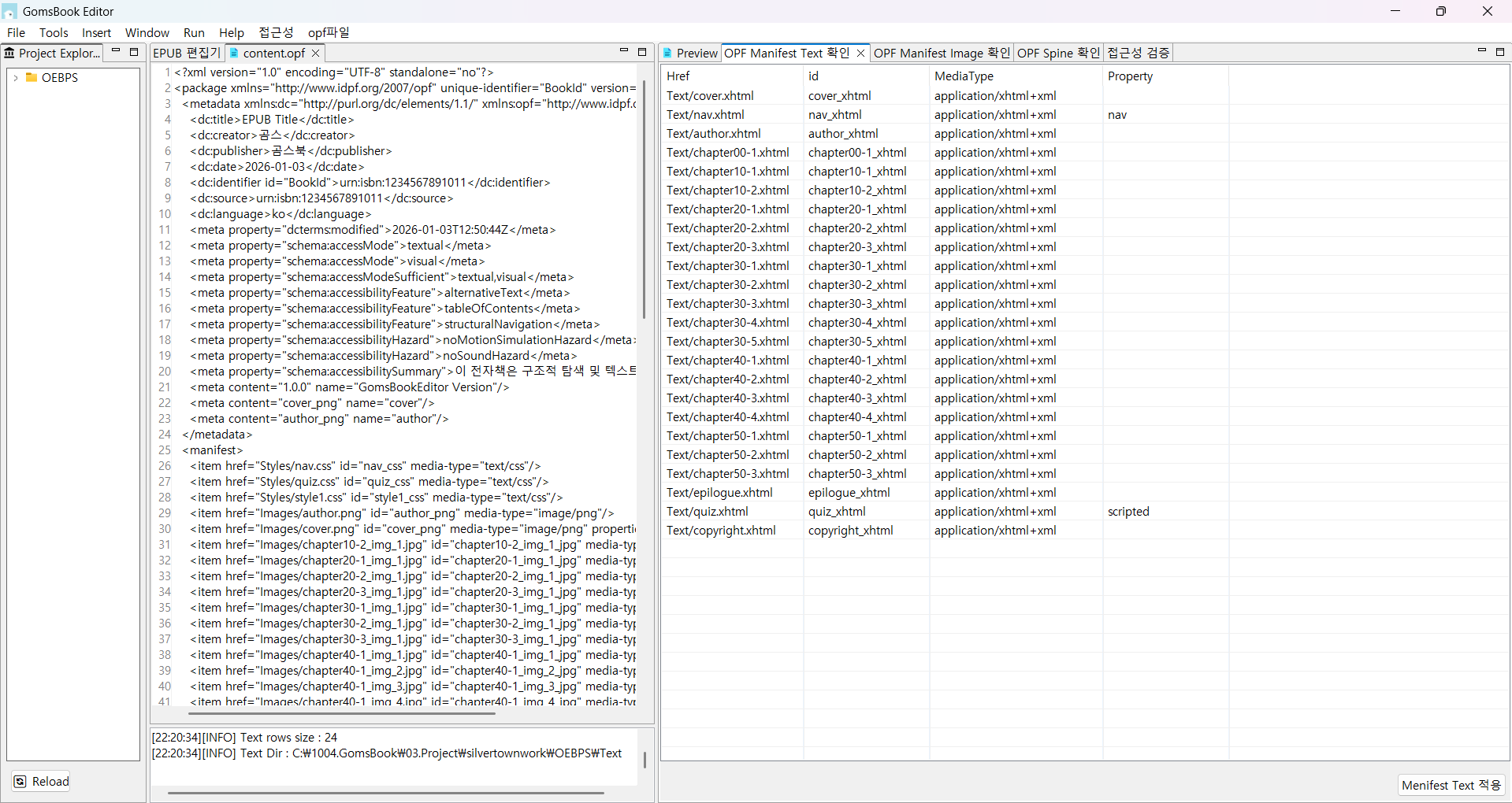 곰스북에디터에서는 content.opf파일에 대한 확인을 검증합니다.