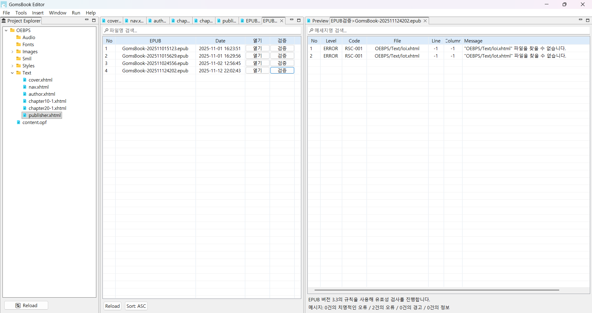 전자책프로그램_곰스북에디터_EPUBCheck검증